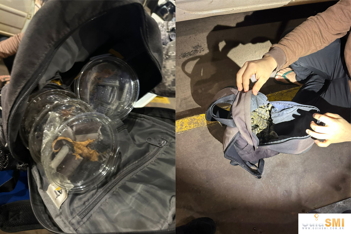 A Receita Federal, em colaboração com a Polícia Federal e a Força Nacional, realizou uma apreensão incomum na noite deste sábado (18/10) na Ponte Internacional da Amizade, principal ligação entre Foz do Iguaçu e Ciudad del Este. Durante fiscalização de rotina, servidores que atuavam no local encontraram 10 lagartixas-de-crista, 12 jacarés, uma sucuri e uma píton com um passageiro de um táxi paraguaio. Todos os animais estavam vivos e eram transportados em mochilas.