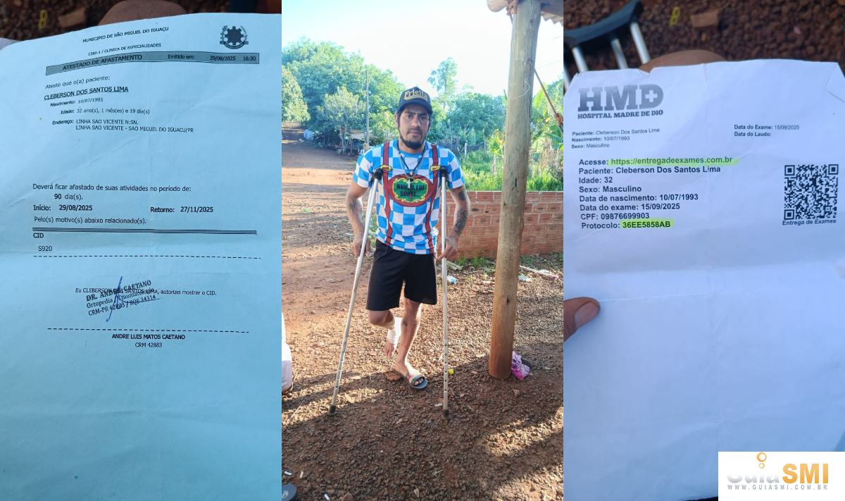 Um morador da comunidade de São Vicente, em São Miguel do Iguaçu, está passando por um momento difícil e precisa da solidariedade da população. Cleberson dos Santos Lima fraturou o pé recentemente e, por conta disso, não está conseguindo trabalhar.