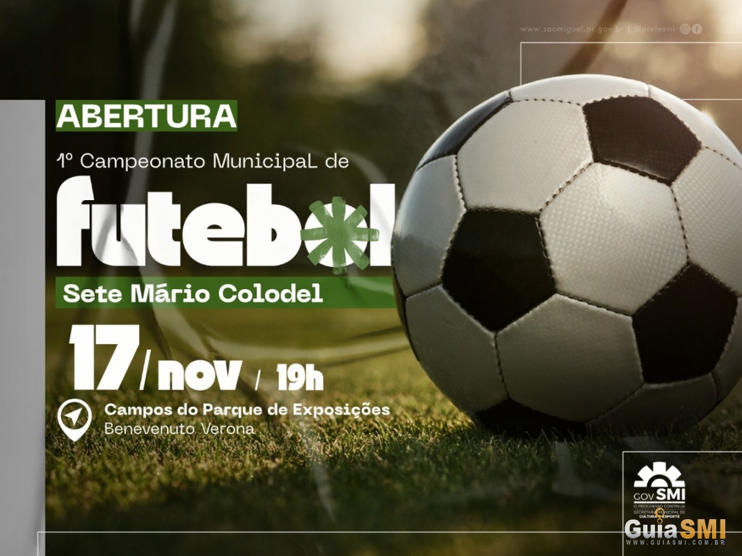O Governo Municipal de São Miguel do Iguaçu, por meio da Secretaria de Cultura e Esporte, anunciou que o 1º Campeonato Municipal de Futebol Sete Mário Colodel terá início na segunda-feira, 17 de novembro, marcando uma nova etapa no calendário esportivo da cidade. A confirmação veio após a conclusão do processo de contratação da nova empresa responsável pela arbitragem da competição.