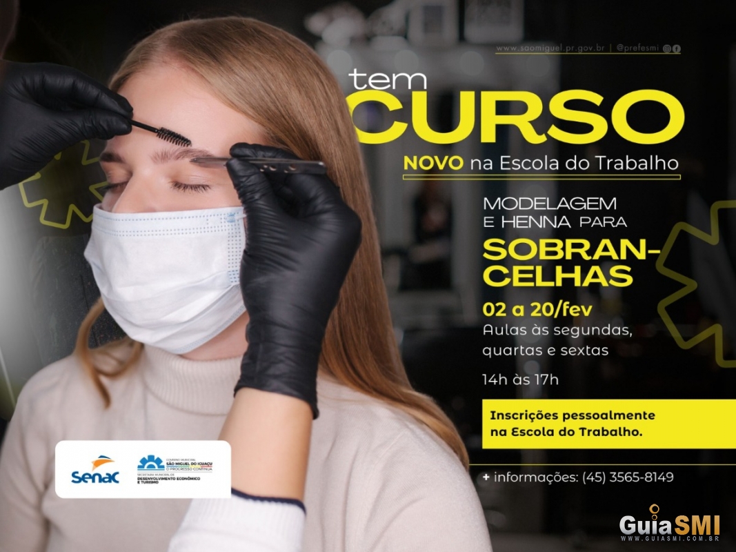 O primeiro curso ofertado no ano é o Curso de Modelagem e Henna para Sobrancelhas, realizado em parceria com o SENAC. A capacitação prepara os participantes nas técnicas de design de sobrancelhas, alinhamento facial e aplicação correta da henna, unindo teoria e prática para a valorização da beleza e o fortalecimento da qualificação profissional.