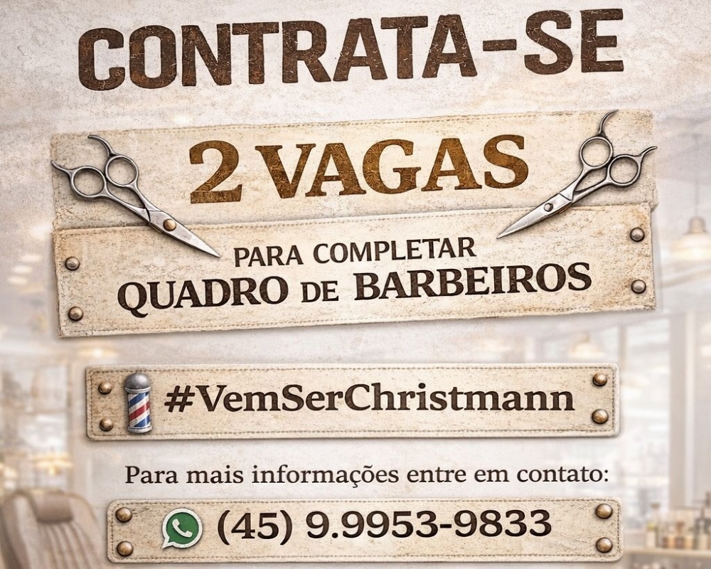 A Christmann Barbearia, referência em atendimento e estilo masculino em São Miguel do Iguaçu, está com duas vagas abertas para barbeiros. A contratação tem como objetivo completar o quadro de profissionais e atender a crescente demanda de clientes.