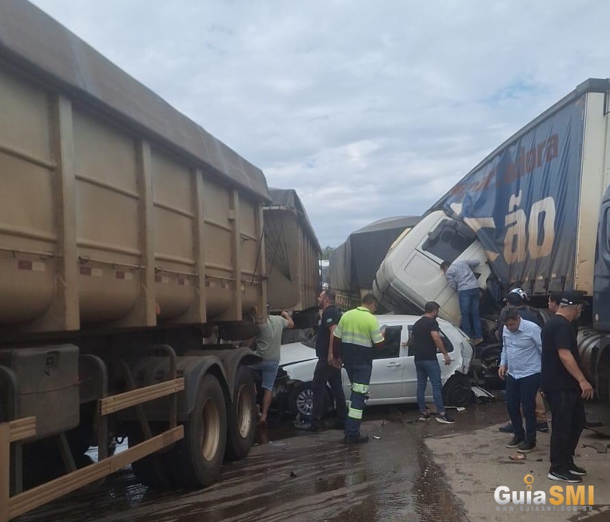 Acidente envolvendo cinco carretas e dois carros ocorreu em trecho sinalizado para destombamento de caminhão; vítima fatal seria o motorista de uma das carretas