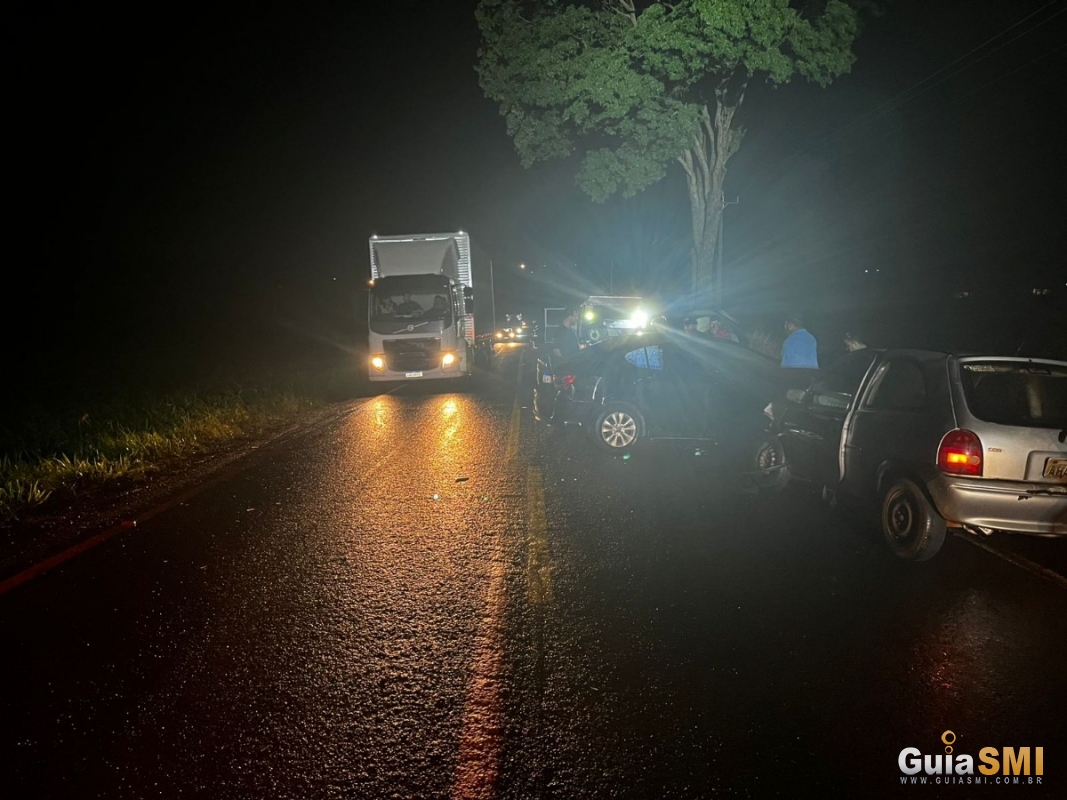 Três pessoas foram encaminhadas à UPA após colisões em sequência ocorridas durante chuva na noite de quinta-feira (16), no km 595 da rodovia estadual