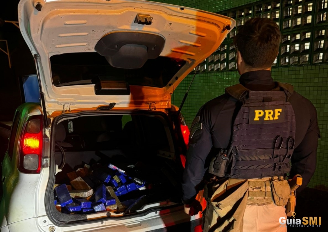 No interior do veículo foram encontrados diversos tabletes de maconha. A fiscalização também revelou que as placas do carro estavam adulteradas. O veículo original foi identificado como um Fiat Uno, com características semelhantes ao automóvel apreendido, mas sem registro de furto ou roubo.