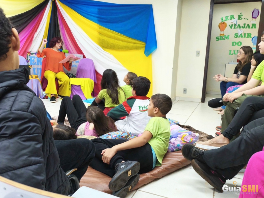 Durante a ação, as crianças puderam assistir à encenação da história “Dragões e Bolhas de Sabão”, conduzida de forma interativa e lúdica. Uma turma da rede municipal de ensino participou da atividade, auxiliando a autora em alguns dos desafios propostos ao longo da narrativa, tornando o momento ainda mais divertido e educativo.