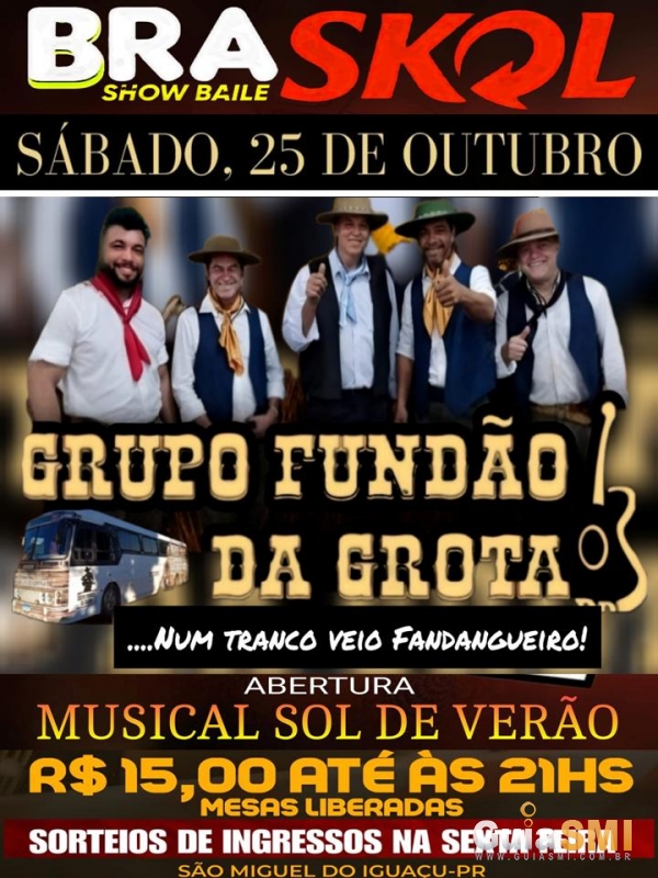A programação começa às 20h com a apresentação do Musical Sol de Verão, abrindo a festa em grande estilo. Logo depois, quem assume o palco é o Grupo Fundão da Grota, trazendo aquele tranco fandangueiro que promete não deixar ninguém parado.