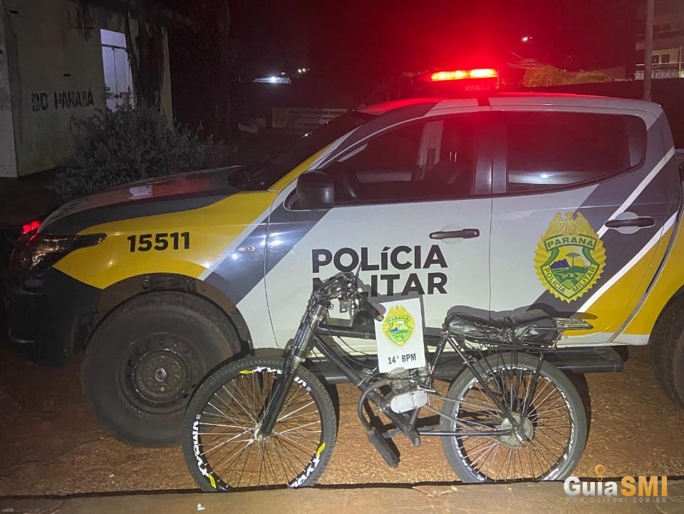 Já às 20h40, os policiais abordaram um veículo originalmente do tipo bicicleta, porém adaptado com motor a combustão e desprovido de pedais, passando a operar exclusivamente por autopropulsão. Conforme a Resolução nº 996/2023 do Conselho Nacional de Trânsito (CONTRAN), o veículo se enquadra como ciclomotor.