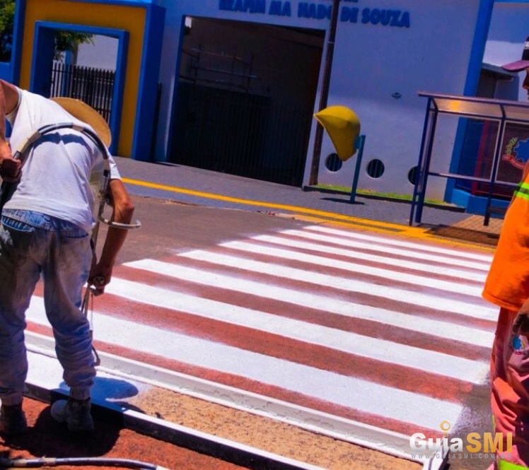 A equipe do Departamento de Trânsito e do Órgão Municipal Executivo de Trânsito e Rodoviário de São Miguel do Iguaçu (SMITRANS) está intensificando os trabalhos de pintura de faixas de pedestres e sinalização horizontal em frente aos colégios do município, como preparação para a volta às aulas.