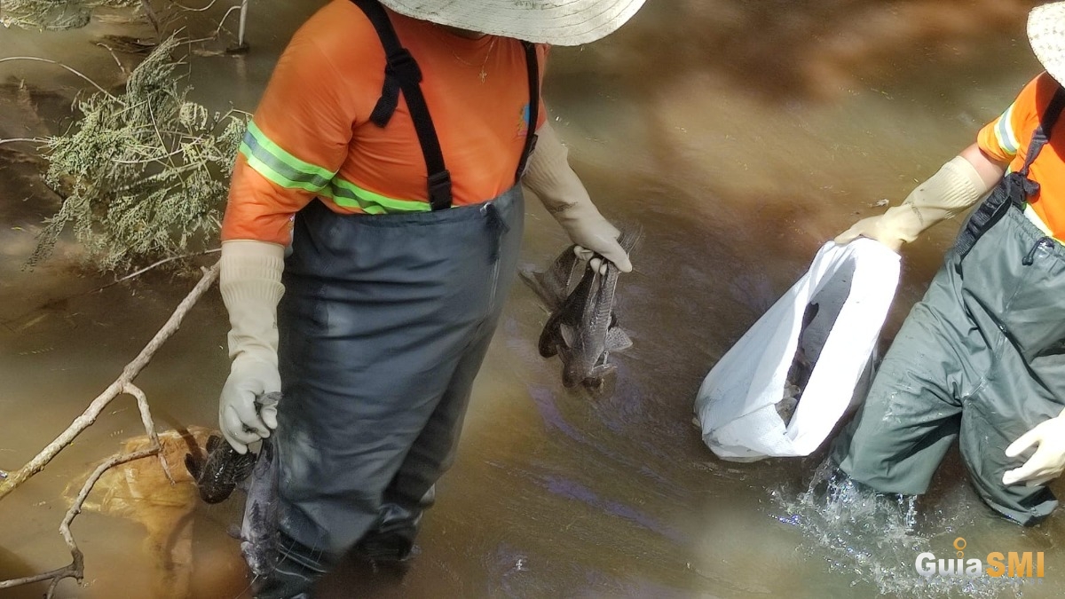 Na tarde desta quinta-feira (22), a Secretaria Municipal de Meio Ambiente de São Miguel do Iguaçu realizou a retirada dos peixes que morreram no Rio Pinto, dando sequência às ações motivadas pela mortandade dos animais ocorrida no início da semana.