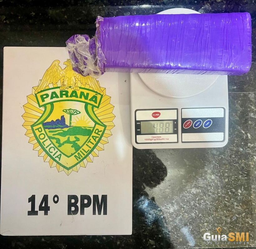 O autor da ameaça fugiu antes da chegada da equipe. Durante o atendimento, a vítima entregou voluntariamente um tablete de maconha, pesando aproximadamente 488 gramas, que, segundo o relato, pertenceria ao autor. Após buscas autorizadas, nenhum outro material ilícito foi localizado. A vítima e o entorpecente apreendido foram encaminhados à Delegacia para as providências cabíveis.