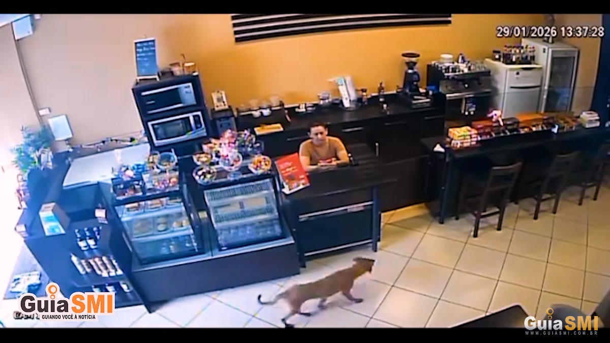 As cenas do “crime” foram registradas por câmeras de segurança de um comércio da cidade. Nas imagens, o cão aparece entrando tranquilamente no local, como quem só quer dar uma olhadinha. Ele se aproxima da atendente no balcão, observa o ambiente e, sem levantar suspeitas, segue em direção à saída.