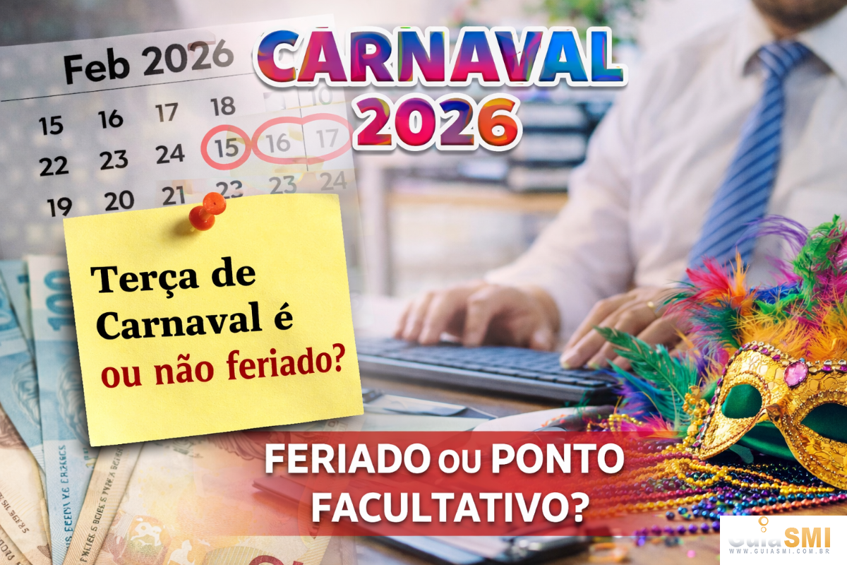 O Governo Federal divulgou ainda em dezembro o calendário oficial de feriados e pontos facultativos de 2026, estabelecendo como ponto facultativo a segunda-feira (16), a terça-feira de Carnaval (17) e a quarta-feira de cinzas (18) até as 14h. O calendário tem validade nacional, mas estados e municípios podem instituir regras próprias por meio de lei local.