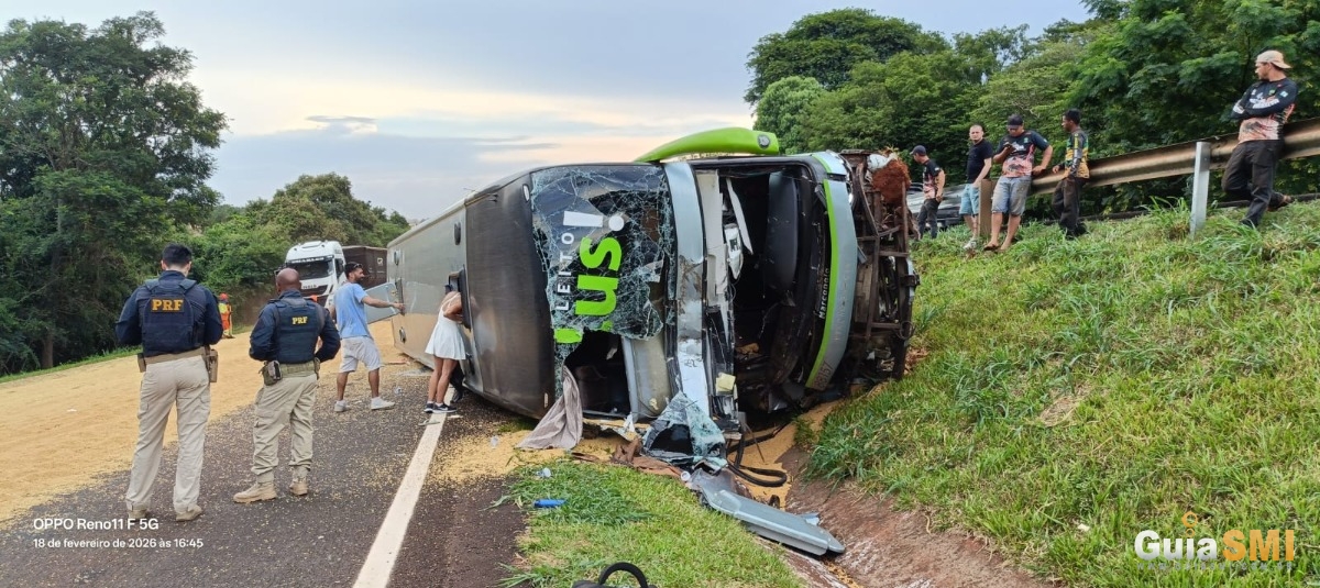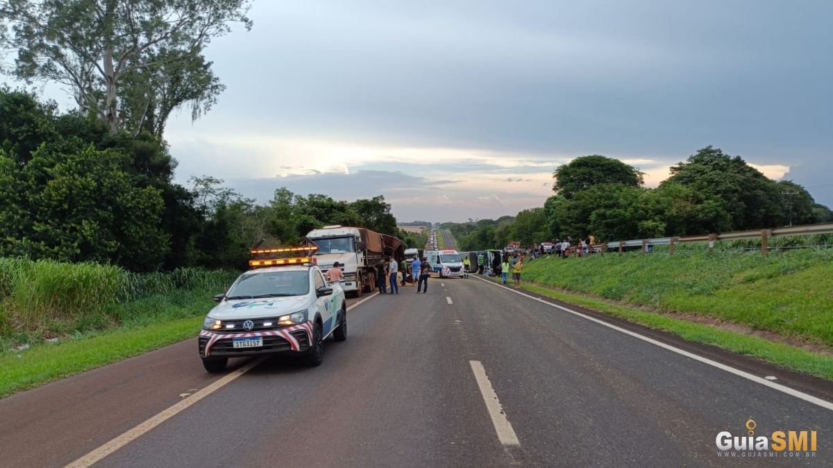 Com o impacto, o ônibus tombou sobre a pista e a carreta provocou o derramamento de carga de soja bloqueando totalmente o tráfego no sentido São Miguel. Diversas ambulâncias foram mobilizadas para prestar atendimento às vítimas, que foram socorridas e encaminhadas a diferentes hospitais da região. Até o momento, não há divulgação oficial sobre o estado de saúde dos envolvidos.
