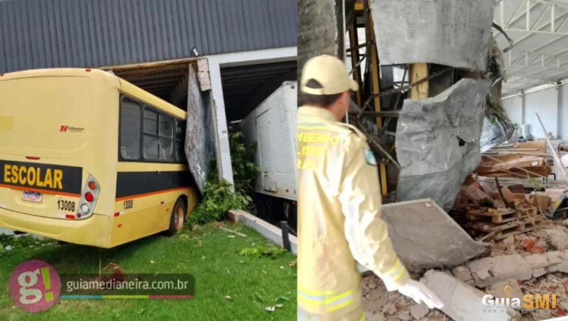 Um ônibus escolar invadiu um estabelecimento comercial no Bairro Florença, em Medianeira, na tarde de ontem, segunda-feira (23), provocando danos materiais e mobilizando equipes de atendimento. Apesar do susto causado pelo acidente, não houve registro de feridos.