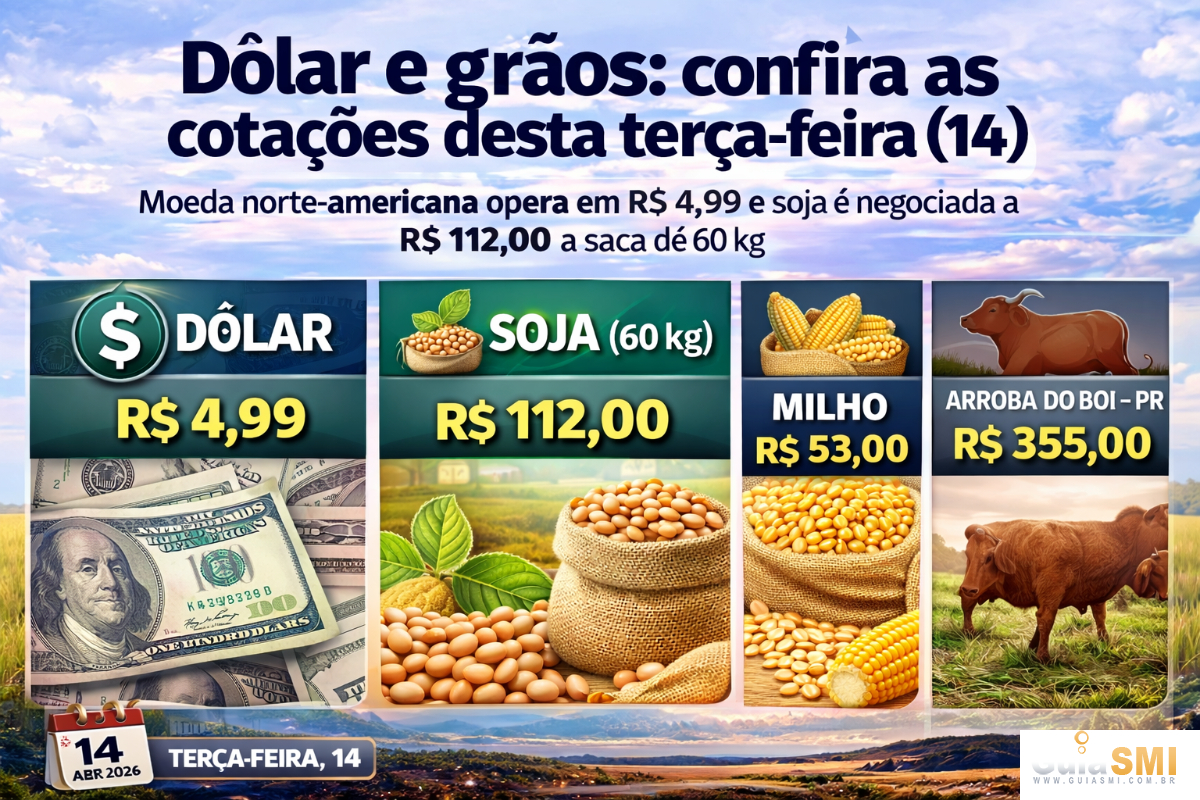Produtores rurais, investidores e consumidores acompanham diariamente a movimentação do mercado financeiro e agrícola, que influencia diretamente os preços de insumos, exportações e comercialização de grãos e carnes. Nesta terça-feira, 14, as principais cotações registram estabilidade em relação aos últimos dias.