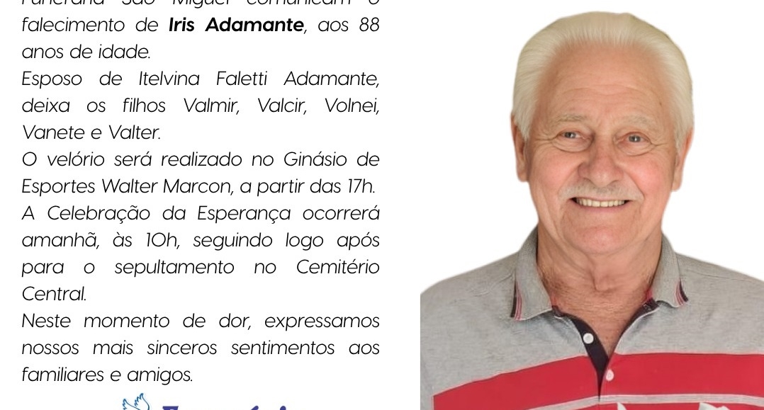 Plano Safisul e Funerária São Miguel comunicam falecimento de Iris Adamante