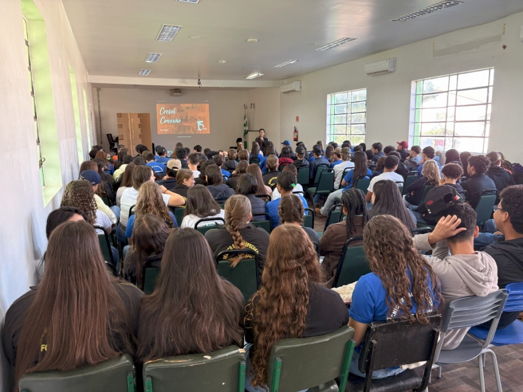 O presidente instigou os jovens a buscarem cada vez mais conhecimento para estarem preparados para o mercado de trabalho ou para a gestão dos seus próprios empreendimentos, bem como demonstrou em números a força da cooperação com a história da Cresol aos 30 anos já alcançou 20 estados brasileiros levando soluções financeiras.