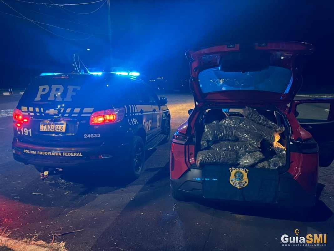 Durante a abordagem, o motorista demonstrava forte nervosismo, e os policiais notaram odor intenso de maconha vindo do interior do veículo. Em revista ao carro, foram encontrados 62 quilos de maconha prensada e 26 quilos de skunk, distribuídos no banco traseiro e no porta-malas.