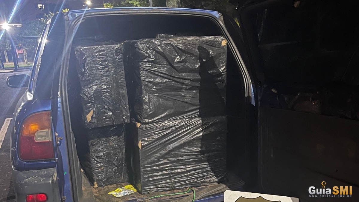 O automóvel foi localizado e abordado pelas equipes policiais. Durante a vistoria, os agentes constataram que o veículo estava adaptado para o transporte de cargas, possuindo apenas o banco do motorista instalado. No interior, foram encontradas 12 caixas de cigarros, totalizando aproximadamente 6 mil maços do produto contrabandeado.