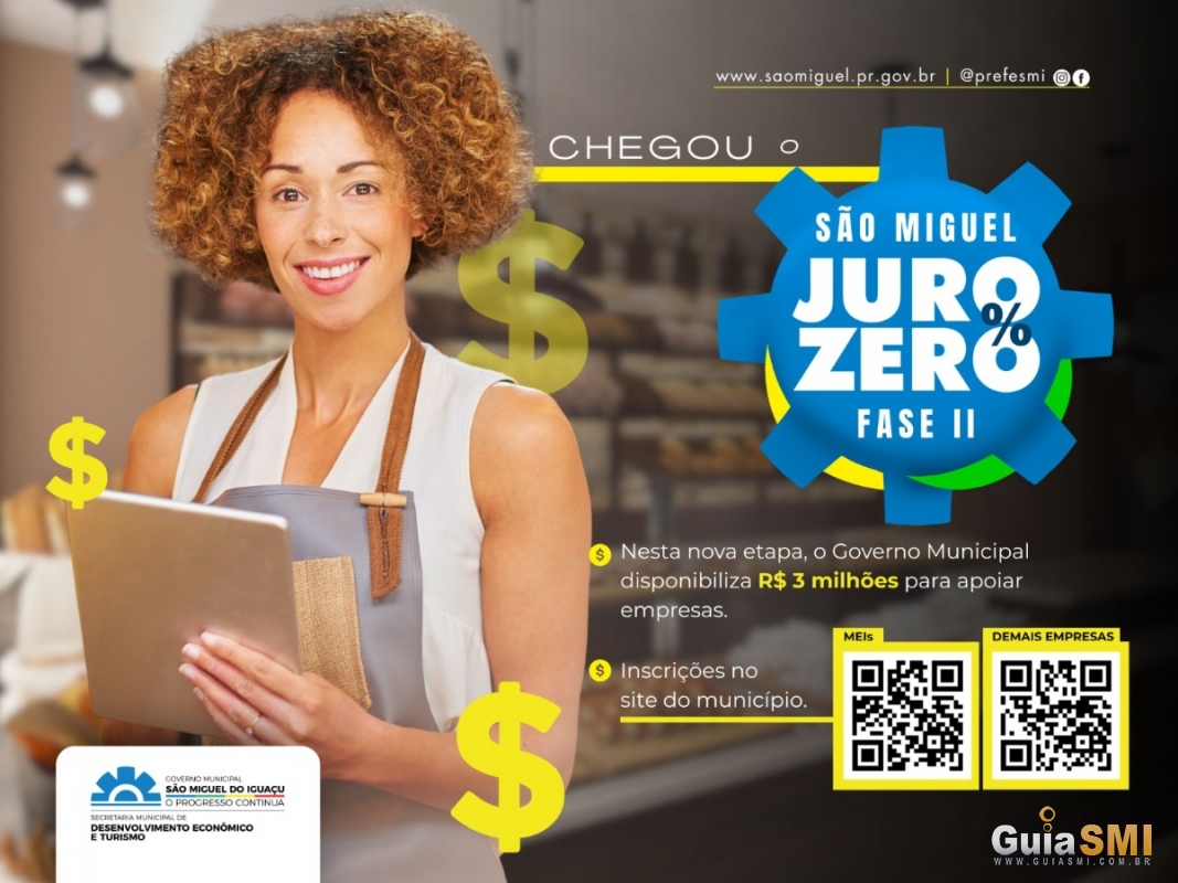 O Governo Municipal de São Miguel do Iguaçu, por meio da Secretaria de Desenvolvimento Econômico e Turismo, está disponibilizando R$ 3 milhões para a Fase II do programa ‘São Miguel Juro Zero’, lançada na quinta-feira, 26, com a publicação no Diário Oficial Eletrônico (DOE).