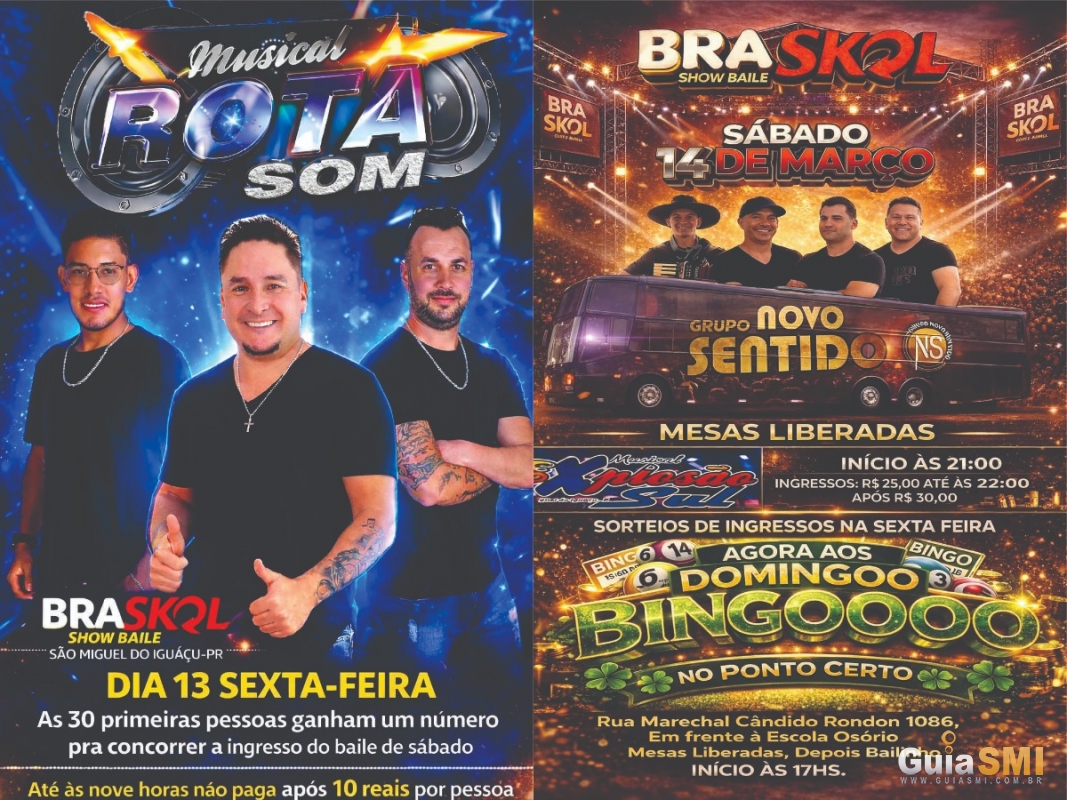 O Clube Braskol promove neste sábado, 14 de março, um grande baile que promete movimentar a região com uma atração inédita: o Grupo Novo Sentido, que se apresentará pela primeira vez para o público local. O evento começa às 21h, com abertura do Musical Meteoro, preparando o clima para uma noite animada de música e dança.