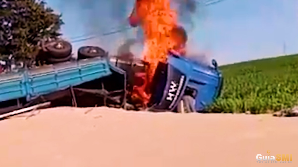 Colisão entre carro e caminhão na BR-277 provoca incêndio e interdição total da rodovia em Céu Azul
