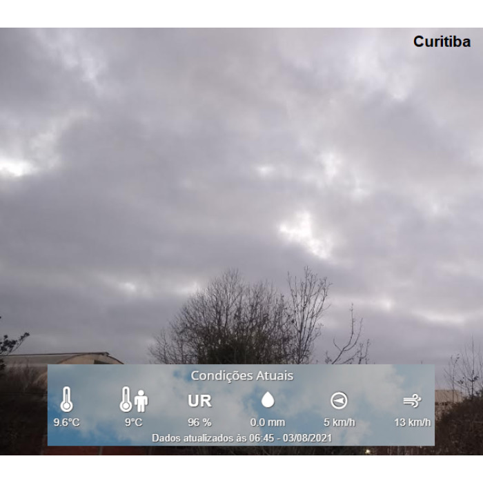 A terça-feira amanhece com presença de muitas nuvens nos Campos Gerais, RMC e no litoral do Paraná. Na região da serra do Mar há registro de garoa ocasional. Demais setores pouca nebulosidade. Está bastante frio entre o oeste, sudoeste e o centro-sul do Estado, com temperaturas abaixo dos 3°C em Pinhão, Palmas e Palotina. - Samuel Braun