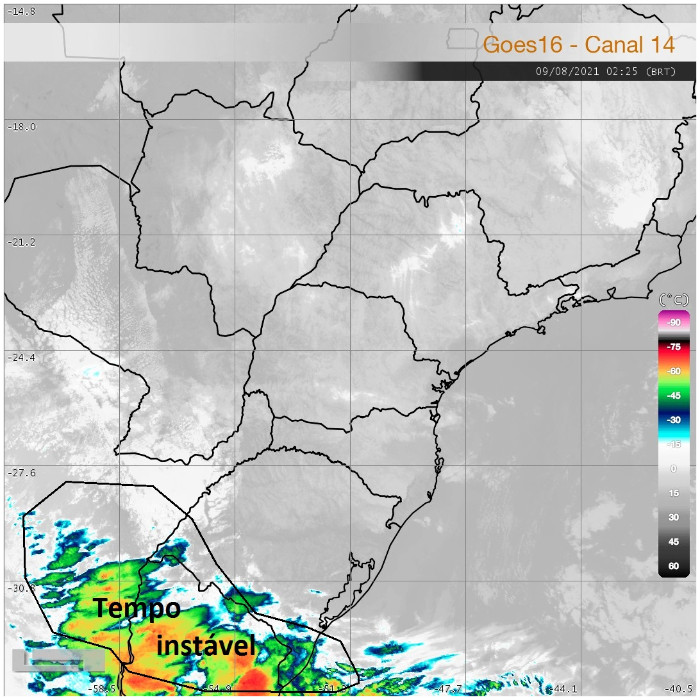 Uma frente fria se aproxima do Rio Grande do Sul nesta madrugada de segunda-feira. No Paraná o tempo continua estável, com presença de alguma nebulosidade baixa e/ou nevoeiro entre a RMC e o litoral paranaense. No interior poucas nuvens. Temperaturas mais baixas nos Campos Gerais e centro-sul, com valores perto dos 10°C em várias cidades. No noroeste está quente: temperaturas acima dos 20°C em Umuarama, Maringá e Paranavaí, por exemplo. - Samuel Braun