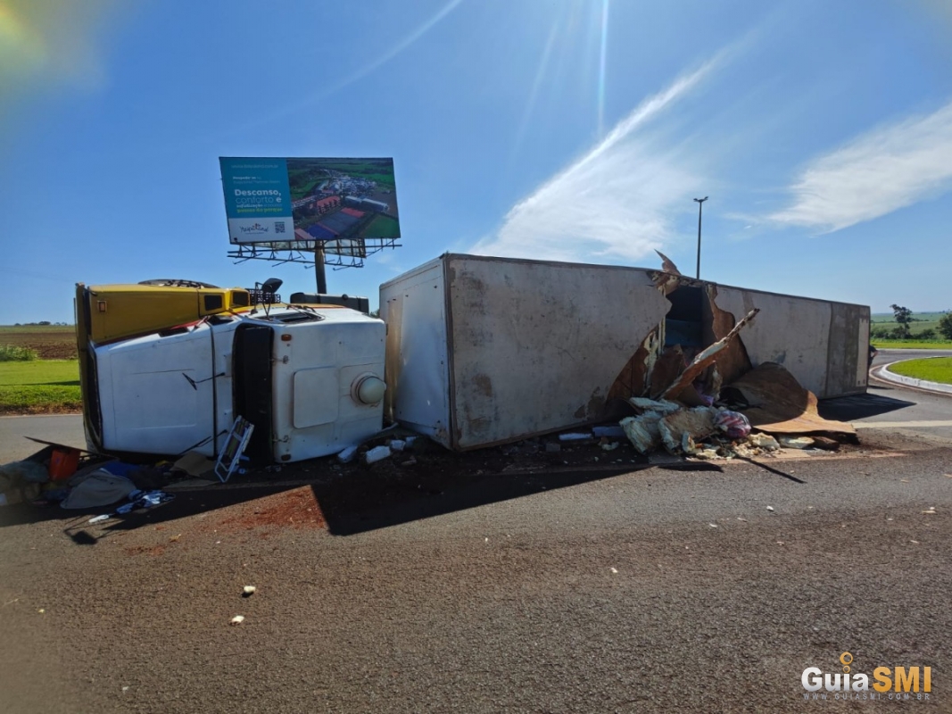 De acordo com informações coletadas no local, o veículo, conduzido por um homem de 68 anos, transitava pelo trevo de acesso à rodovia estadual quando, ao atingir o Km 023+900m, acabou tombando sobre o trevo. O caminhão estava acoplado a uma carreta Reb/Increal, também registrada em Medianeira/PR.