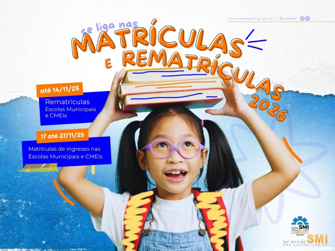 O Governo Municipal de São Miguel do Iguaçu, por meio da Secretaria de Educação, deu início na segunda-feira, 3 de novembro, ao cronograma de rematrículas e matrículas para o ano letivo de 2026 nas escolas municipais e Centros Municipais de Educação Infantil (CMEIs).