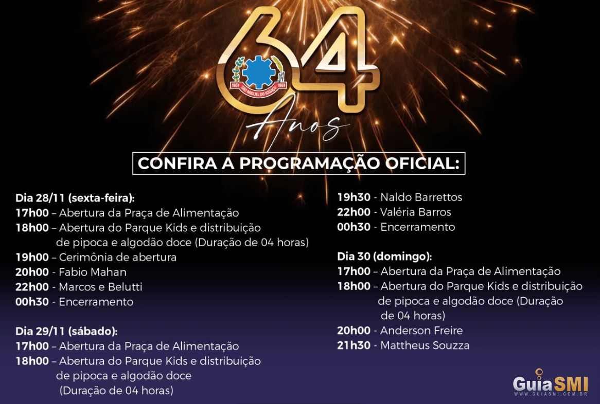 Com uma programação que mistura cultura, diversão e música para todas as idades, o aniversário de 64 anos de São Miguel do Iguaçu promete ser inesquecível. Uma celebração que reforça o orgulho de pertencer a uma cidade que cresce, se desenvolve e valoriza sua comunidade.