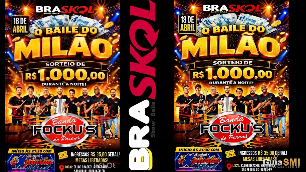 O tradicional Clube Braskol, em São Miguel do Iguaçu, será palco de uma grande festa neste sábado, 18 de abril, com a realização do aguardado Baile “O Milão”, evento que promete movimentar a cidade com música ao vivo, diversão e sorteios em dinheiro.