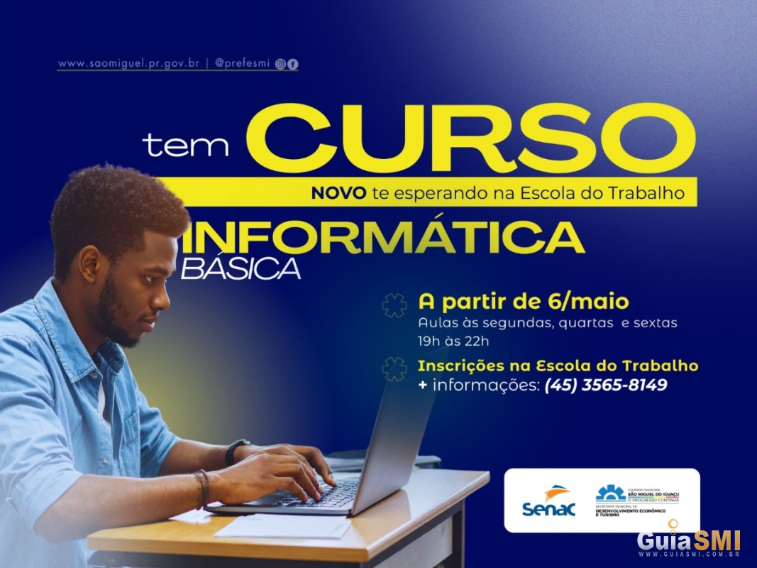 O Governo Municipal de São Miguel do Iguaçu, por meio da Secretaria Municipal de Desenvolvimento Econômico e Turismo, está com inscrições abertas para o curso Uso Básico do Micro com Internet – Word, Excel e Internet.